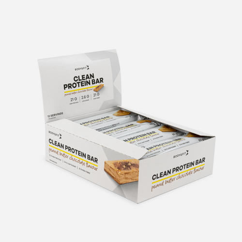 Wij zetten de wereld van eiwitrepen op zijn kop! Zuivere eiwitten, vezels, verlaagd gehalte aan koolhydraten* en slechts 179 kcal. Clean Protein Bar is de “eat clean” eiwitreep zonder coating met de ideale voedingswaardes voor fanatieke sporters en in je eiwitdieet. Onverslaanbaar lekker! Op zoek naar de allerlekkerste ”eat clean” eiwitreep zonder coating? Gezoet met stevia, slechts 179 kcal en maar liefst 20 gram eiwitten. Deze heerlijke Clean Protein Bar koop je natuurlijk online bij Body & Fit! bodyenfit.nl Onze Clean Protein Bar is verbazingwekkend goed van smaak, letterlijk “instant verslavend” zo lekker. Gelukkig kun je er zoveel van eten als je wilt! Clean Protein Bars zijn namelijk gezoet met stevia extract. Hierdoor zijn er geen extra suikers aan toegevoegd. Stevia extract is natuurlijk, levert geen calorieën en is ideaal bij een bewuste levensstijl. Het wordt geïsoleerd uit het blad van de stevia plant.De smaken in de mixdoos kunnen variëren, zie individuele smaken voor voedingswaarden. Clean! De ideale voedingswaardes Eiwitrijk: 20g hoogwaardige whey eiwitten per reep!,Verlaagd gehalte aan koolhydraten* Slechts 182 kcal per reep,Bevat IMO, prebiotische voedingsvezels,Geen toegevoegde suikers,Natuurlijk gezoet (stevia extract),Geen toegevoegde suikers ,Natuurlijk gezoet (stevia extract)