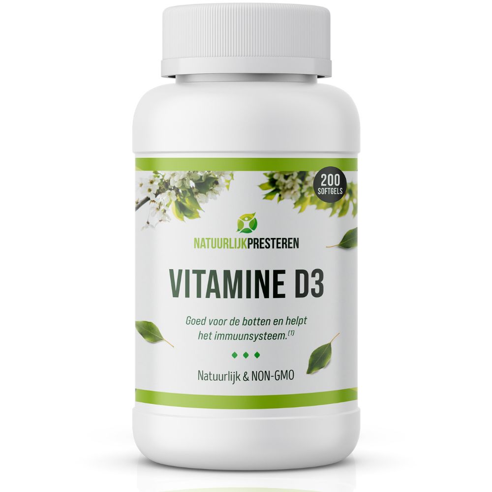 Vitamine D3 (25 mcg)– opgelost in olijfolie voor een verbeterde opname Naar schatting hebben 50 – 80% van de mensen een tekort aan vitamine D. Zeker in de wintermaanden ligt dit percentage aan de hogere kant. Vooral mensen die minder vaak buiten komen, zoals personen met kantoorbanen, ouderen en mensen met chronische ziekten. Daarnaast hebben mensen met een getinte of donkere huidskleur vaker een tekort aan vitamine D. Het lichaam maakt namelijk vitamine D aan met behulp van natuurlijk zonlicht. Wanneer je een getinte of donkere huid hebt, dringt het UV-licht moeilijker de huid binnen. Ook het gebruik van zonnebrand verlaagt de aanmaak van vitamine D. Onze vitamine D is speciaal ontwikkeld om de tekorten aan te vullen met behulp van hoge kwaliteit cholecalciferol (D3). Dit is de best opneembare vorm van vitamine D, welke veel beter wordt opgenomen dan D2. We hebben tevens olijfolie toegevoegd, waardoorde vitamine D3 beter wordt opgenomen. Best opneembare vorm van vitamine D in natuurlijke vorm Met olijfolie voor een verbeterde opname Goede onderhoudsdosering van 25 mcg D3 per capsule Functies van vitamine D3 Vitamine D3 is een essentiële en onmisbare vitamine voor onze gezondheid. Het heeft oneindig veel premaire en secundaire functies in het menselijk lichaam. Er wordt ook steeds meer bekend over vitamine D, omdat het aantaal mensen met een vitamine D tekort steeds sneller toeneemt. Het draagt bij aan normaal calcium-gehalten in het bloed Het helpt bij het opnemen van fosfor en calcium uit voeding Het is van belang voor de samenstelling van botten Het speelt een rol bij de botaanmaak Het is goed voor weefselgroei en ontwikkeling Het speelt een rol bij het proces van celvernieuwing Het is goed voor ons immuunsysteem Het is belangrijk voor een sterk gebit Het is goed voor de werking van de spieren Het speelt een rol bij de gemoedstoestand en nachtrust Dosering vitamine D3 Dit product bevat 25 mcg per capsule. Dit is een goede onderhoudsdosering voor volwassenen. Bij grotere risico’s op een tekort (ouderen, weinig buiten komen) raden we eerder de 75 mcg per dag aan. Je kunt 3 capsules van dit product gebruiken of ons product met 75 mcg vitamine D3 per capsule gebruiken.